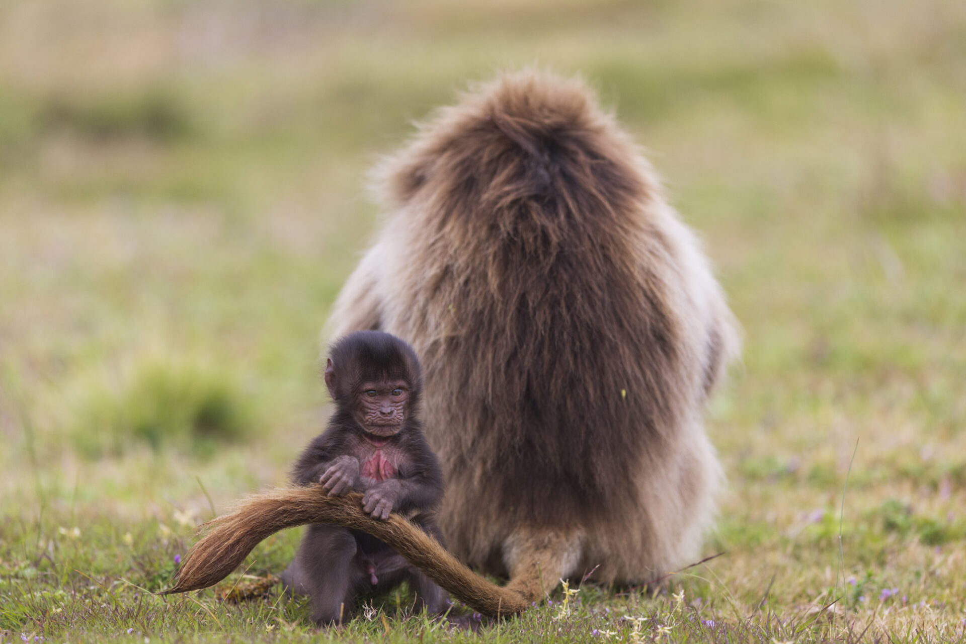 Gelada Baboon (Theropithecus gelada), young close to his mother, Simien Mountains National Park, Ethiopia Géladas (Theropithecus gelada), jeune proche de sa mère, Parc national Simien, Ethiopie
