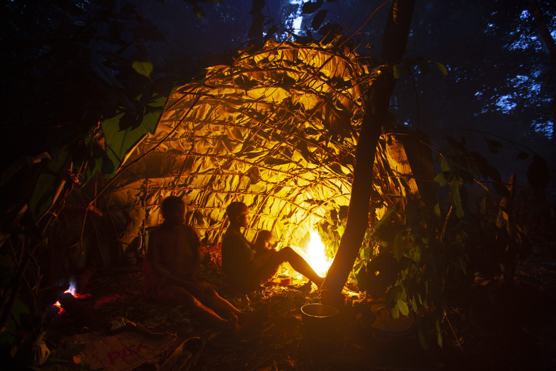 Cameroon Population pygmée Baka campement de chasse, sous la hutte Cameroun (Sud est)