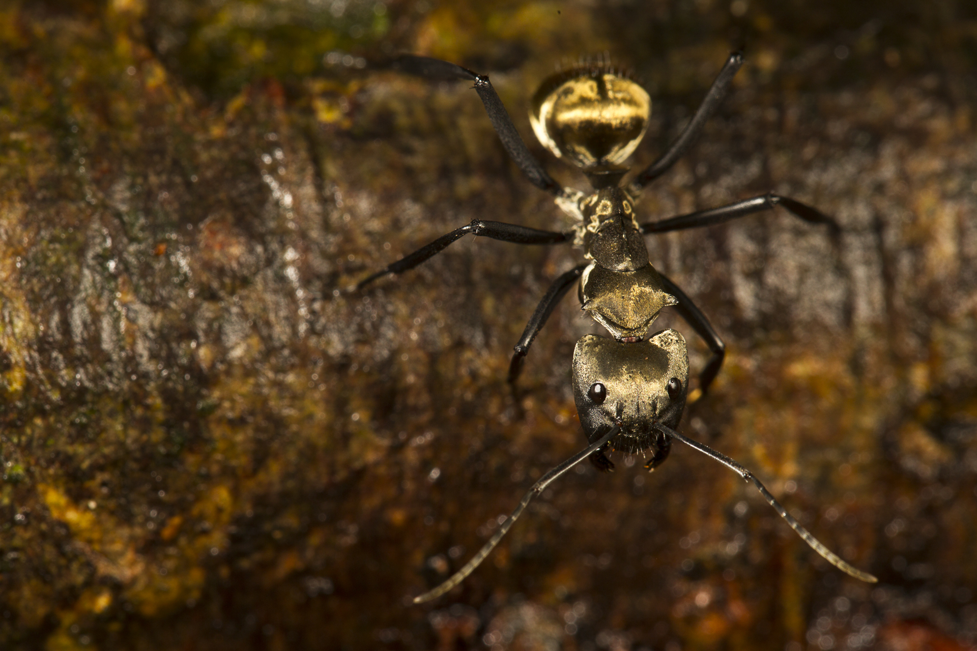 Fourmi / Camponotus sericeiventris Forêt tropicale sur l'île de Barro Colorado sur le lac Gatùn, canal de Panama. PANAMA Carpenter Ant / Camponotus sericeiventris Tropical rain forest. Barro Colorado island, Gatun lake, panama canal. PANAMA